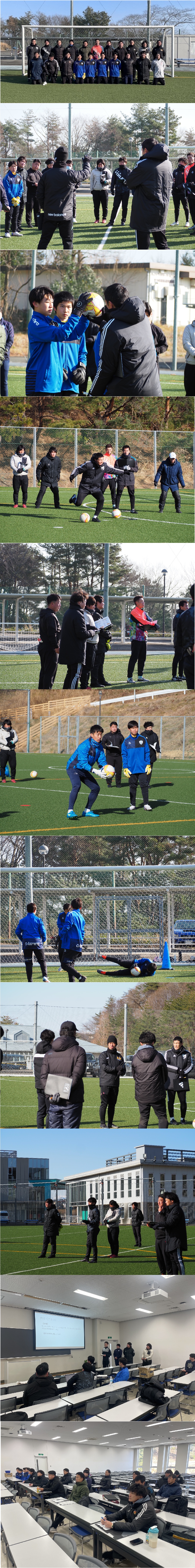 JFAコーチの指導の下、東北各県のGKプロジェクトのメンバーが集合形式で、東北各県GKの育成、スタッフの育成を目的として行いました。トレーニング・講義会場の提供を頂きました東北工業大学様、指導選手の派遣を頂きましたACエボルティーボ様に感謝申し上げます。
